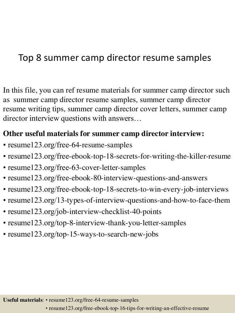 Cover Letter For Camp Counselor Writing Successful Resumes And