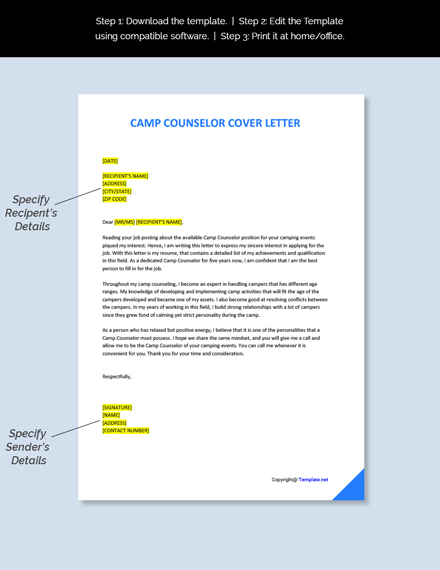 Free Camp Counsellor Cover Letter Word Google Doc Apple Mac