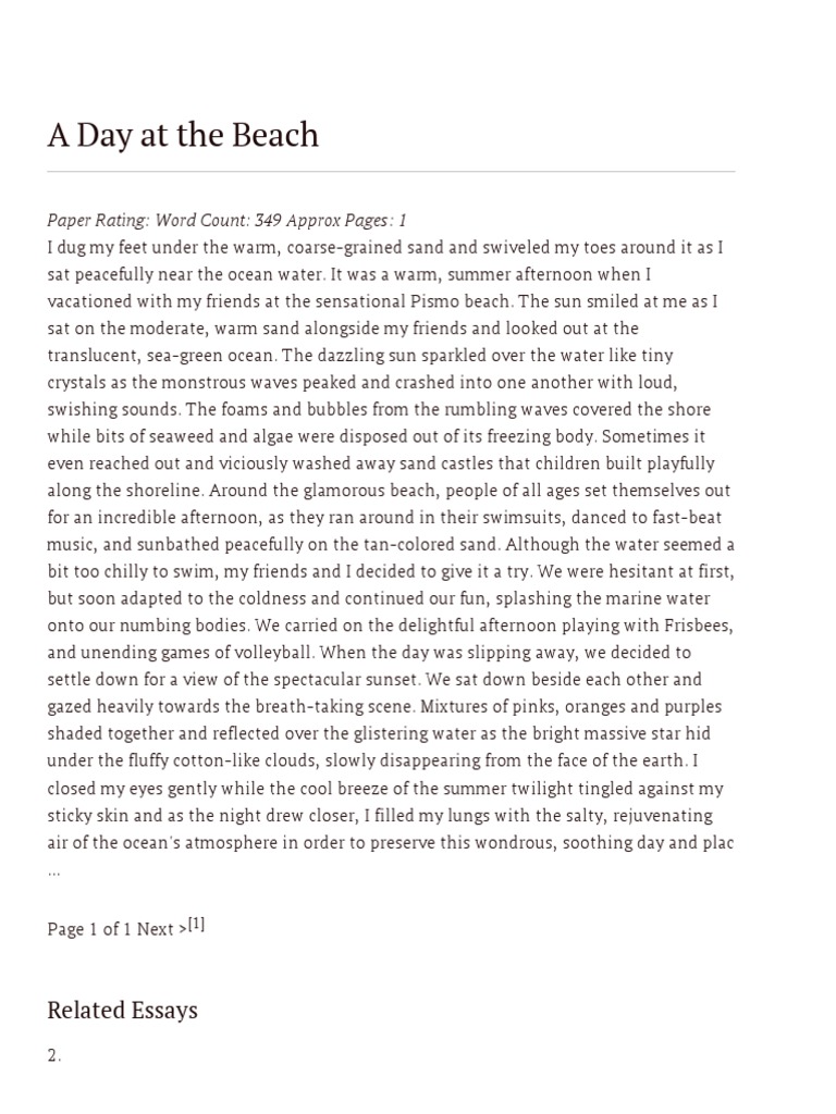 Descriptive Essay Day At The Beach Free Essay Example