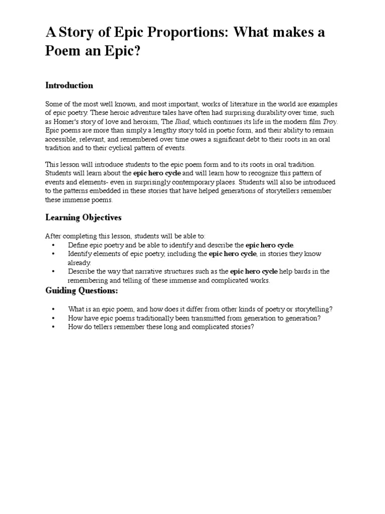 Short Epic Poems Examples Narrative Poetry Poetry Lessons