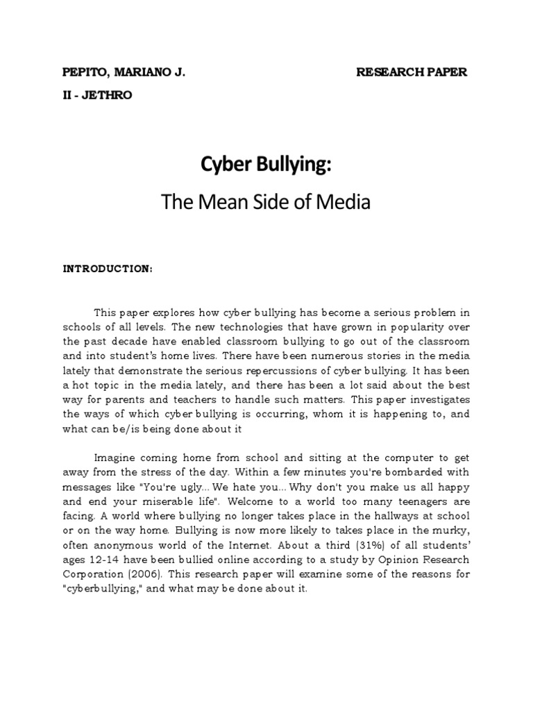 010 Proposal Essay On Bullying Beautiful Ideas Cyber Differences