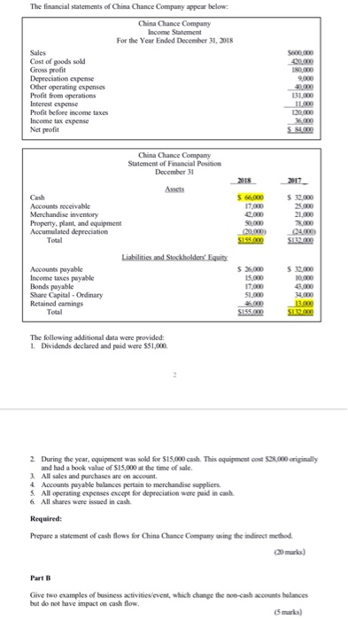 Solved The Financial Statements Of China Chance Company A Chegg Com