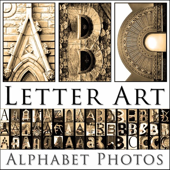 Letter Art Individual Alphabet Prints Sepia Ships Free In 24 Etsy