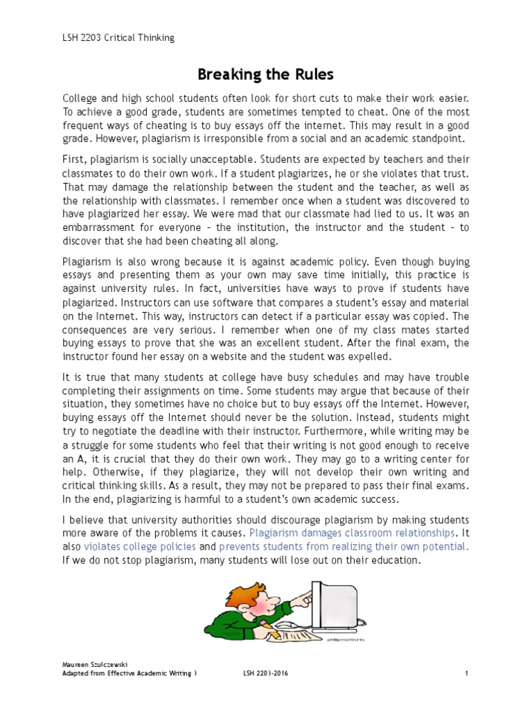 Argument Essay Breaking The Rules Essays Plagiarism