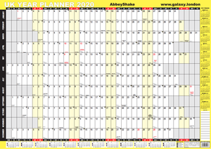 2020 Uk Unmounted Year View Wall Office A1 Large Planner Calendar