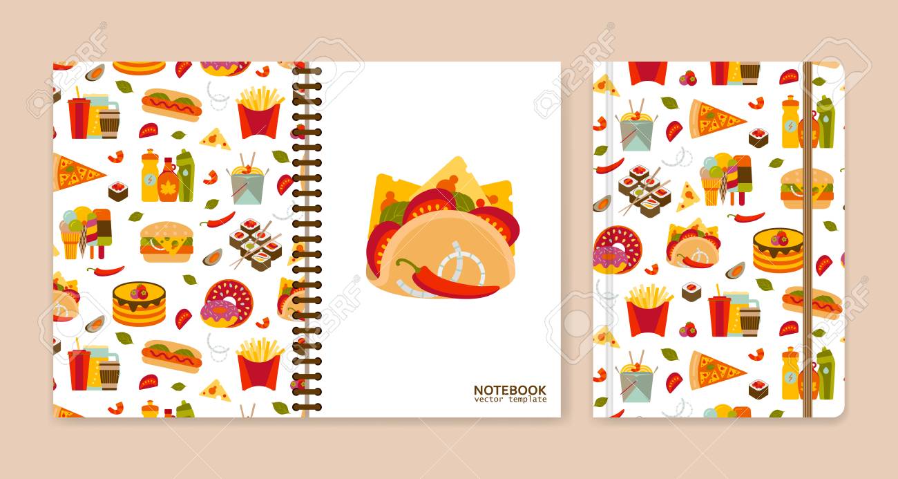 Diseno De Portada Para Cuadernos O Albumes De Recortes Con Iconos De Comida Rapida Ilustracion Vectorial Ilustraciones Vectoriales Clip Art Vectorizado Libre De