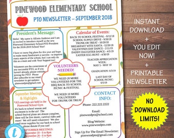 Pta Pto Newsletter Template Fully Editable And Etsy