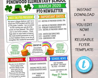 Editable Pto Pta Newsletter Flyer Printable Handout School Etsy