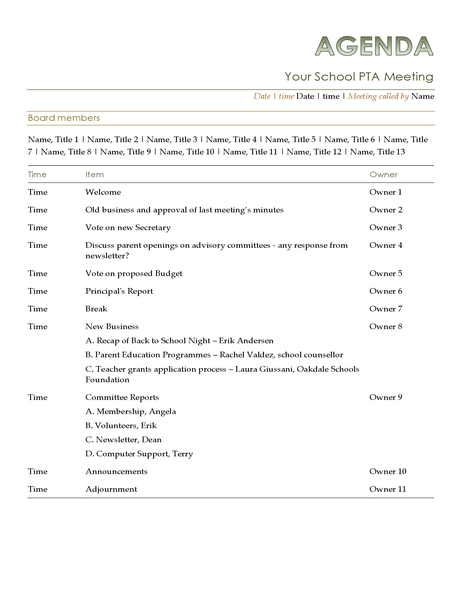 Pta Meeting Minutes Templates Pta Meeting Pto Meeting Pta