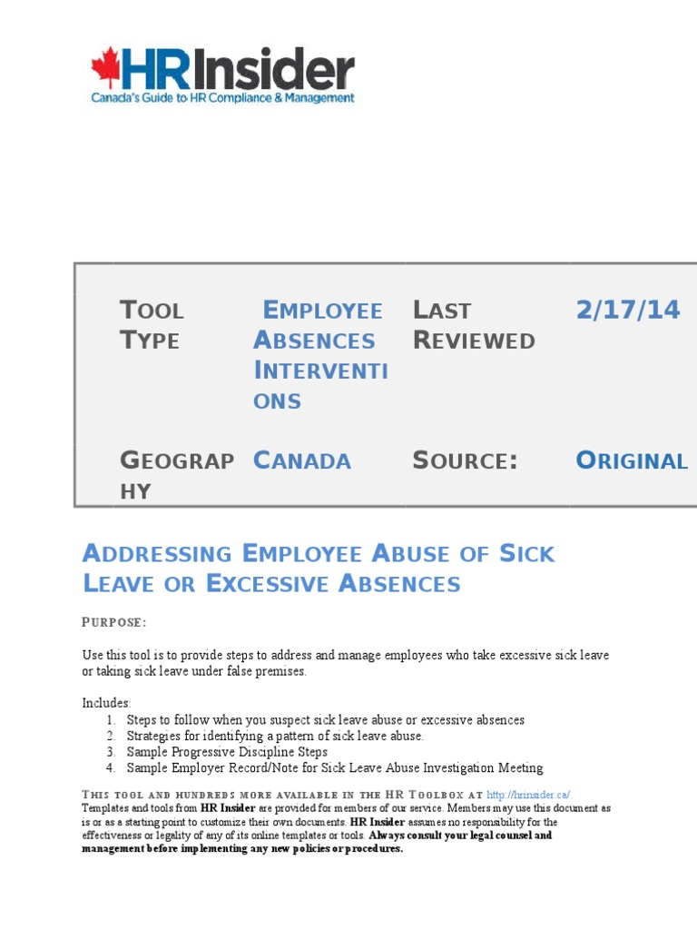 Addressing Employee Abuse Of Sick Leave Or Excessive Absences Sick Leave Employment