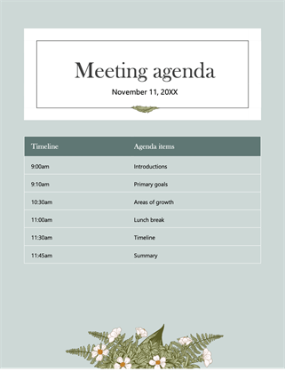 Specify information usually found in a standard meeting minutesif you have already selected your business. Know the expected meeting attendeesfor you to know the language and tone that you will incorporate in your. Microsoft agenda templates provide an easy way to organize items to keep your meeting or event on schedule. The meeting agenda gives a sense of purpose and direction to the meeting which is very important in any small business.