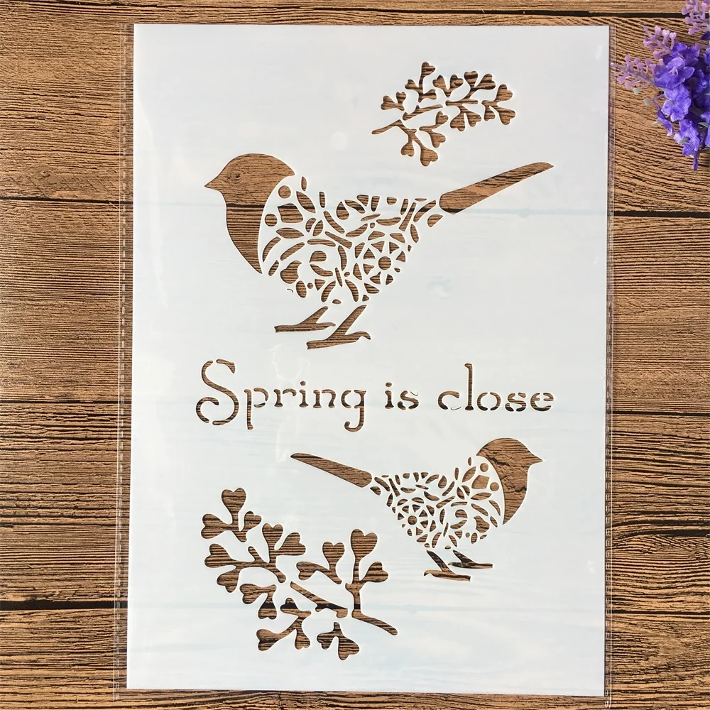 1pcs A4 Spring Is Close Birds Diy Layering Stencils Wall Painting