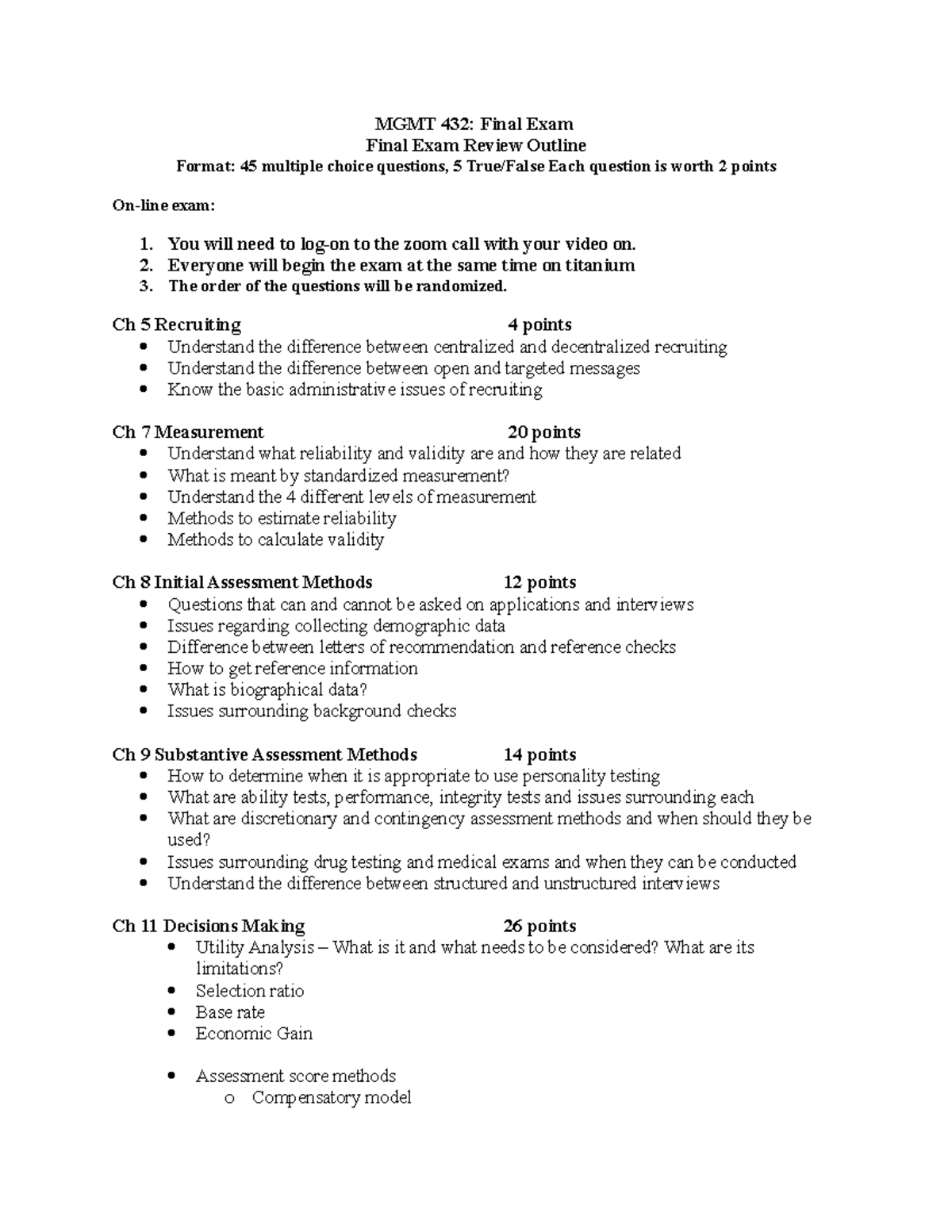 Mgmt 432 Final Exam Review Outline Spring 2020 Mgmt 432 Studocu