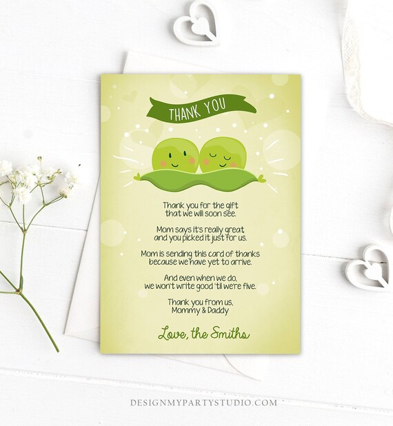 Editable Peas In A Pod Baby Shower Thank You Note Twin Baby Shower