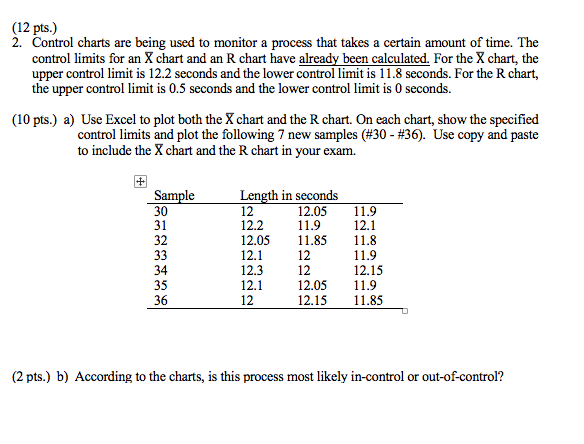 Solved 12 Pts 2 Control Charts Are Being Used To Moni