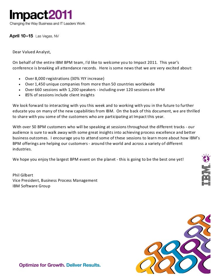 Welcome Letter From Phil Gilbert With List Of Bpm Customer Speakers