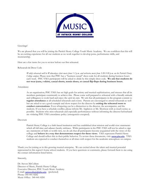 Yma Welcome Policy Letter Patrick Henry College