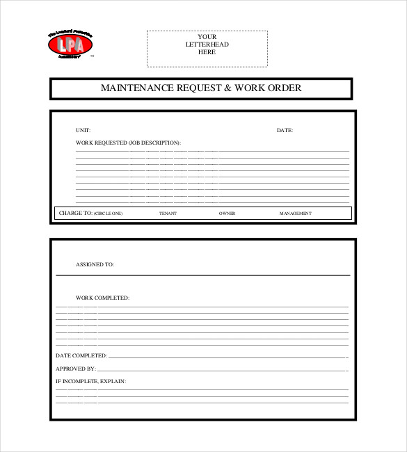 Free 8 Sample Maintenance Work Order Forms In Pdf